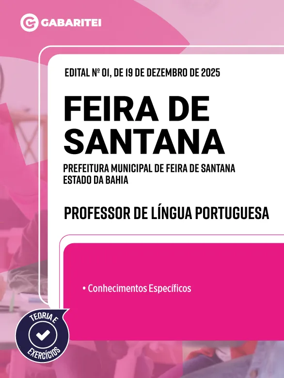 A Apostila Prefeitura Municipal de Feira de Santana – Estado da Bahia – Professor de Língua Portuguesa – 2026, desenvolvida pela Editora Gabaritei, foi elaborada para candidatos que desejam se preparar para o concurso da Prefeitura Municipal de Feira de Santana – Estado da Bahia.
