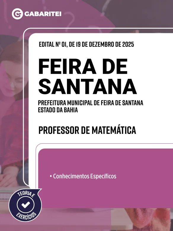 A Apostila Prefeitura Municipal de Feira de Santana – Estado da Bahia – Professor de Matemática – 2026, desenvolvida pela Editora Gabaritei, foi elaborada para candidatos que desejam se preparar para o concurso da Prefeitura Municipal de Feira de Santana – Estado da Bahia.