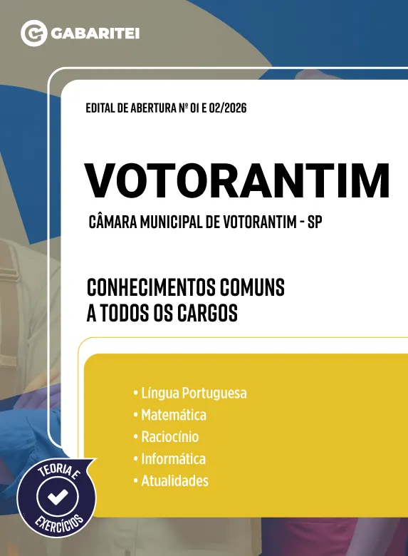 A apostila para o concurso Câmara Municipal de Votorantim - SP foi elaborada com o objetivo de oferecer uma preparação sólida e estratégica, reunindo os conteúdos essenciais para quem deseja iniciar os estudos com mais organização e direcionamento.
